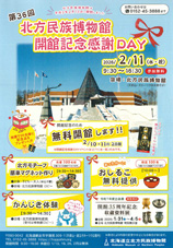 日時 2026年2月11日(水・祝)9:30-16:30 会場 北方民族博物館 参加 無料 開館記念感謝DAYチラシ(PDF)